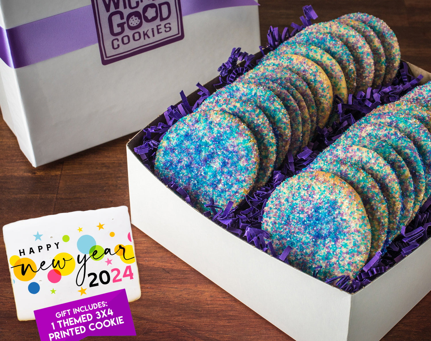 New Year Sprinkled Sugar Cookie Gift Box w/ 3×4 Rectangle Logo